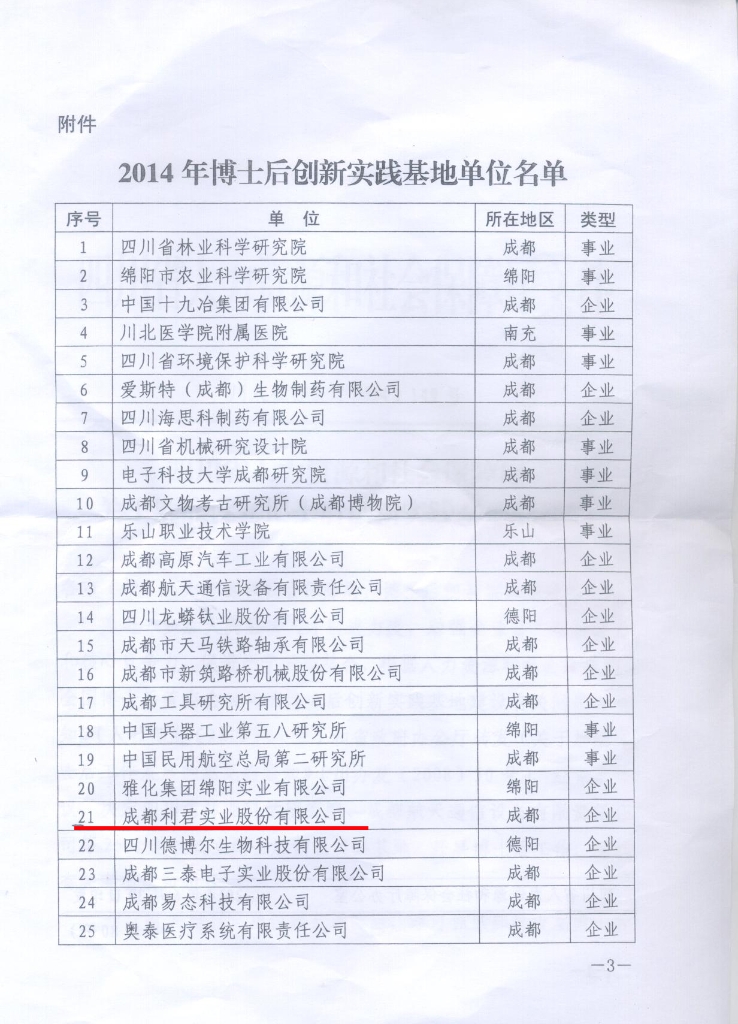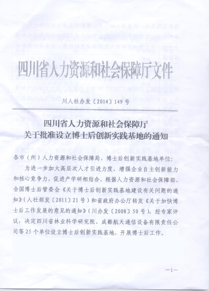 公司于2014年6月30日獲得四川省人力資源和社會(huì)保障廳批準(zhǔn)的博士后創(chuàng)新實(shí)踐基地。