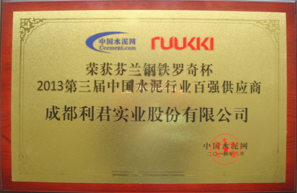 2014年3月公司榮獲第三屆中國水泥行業(yè)百強供應(yīng)商。